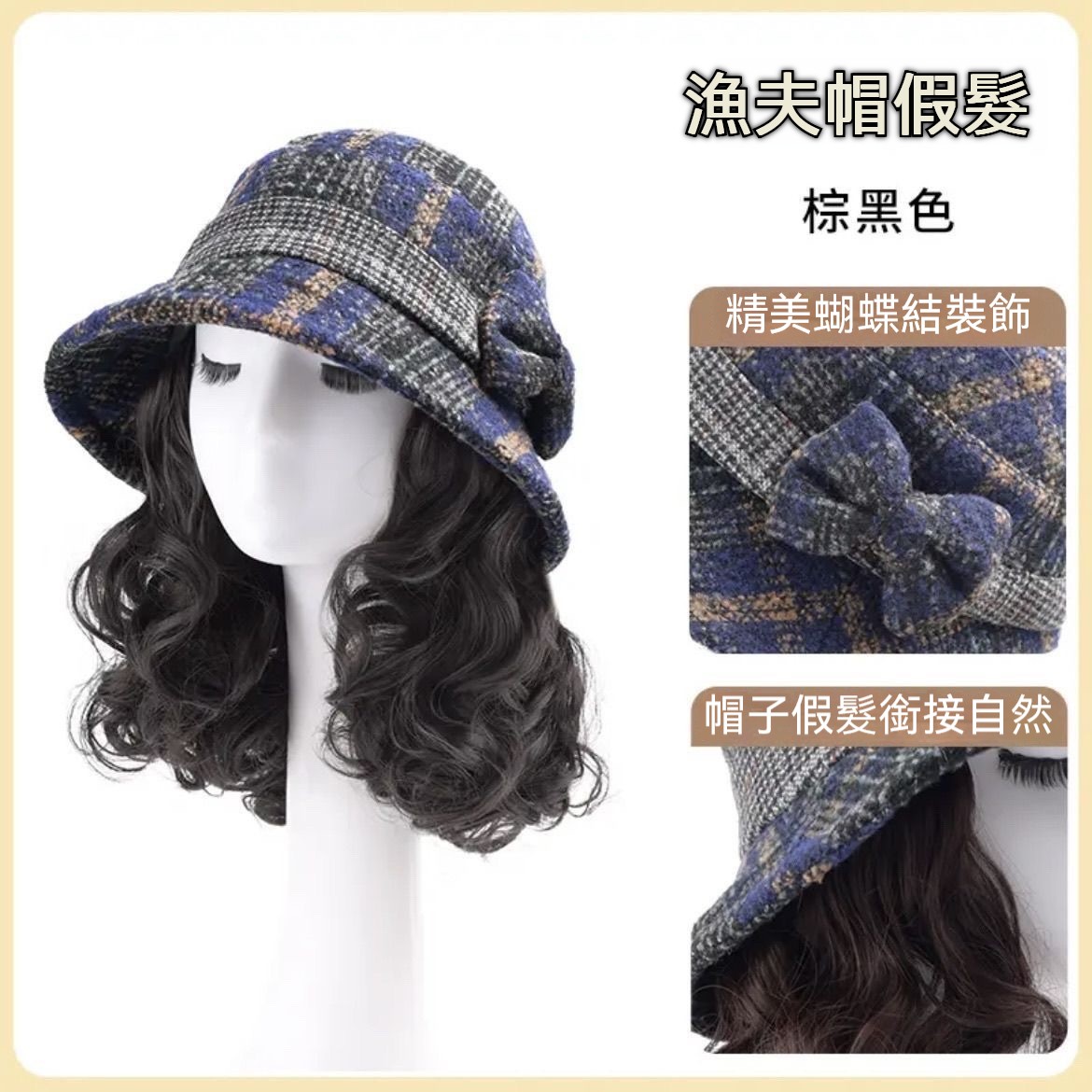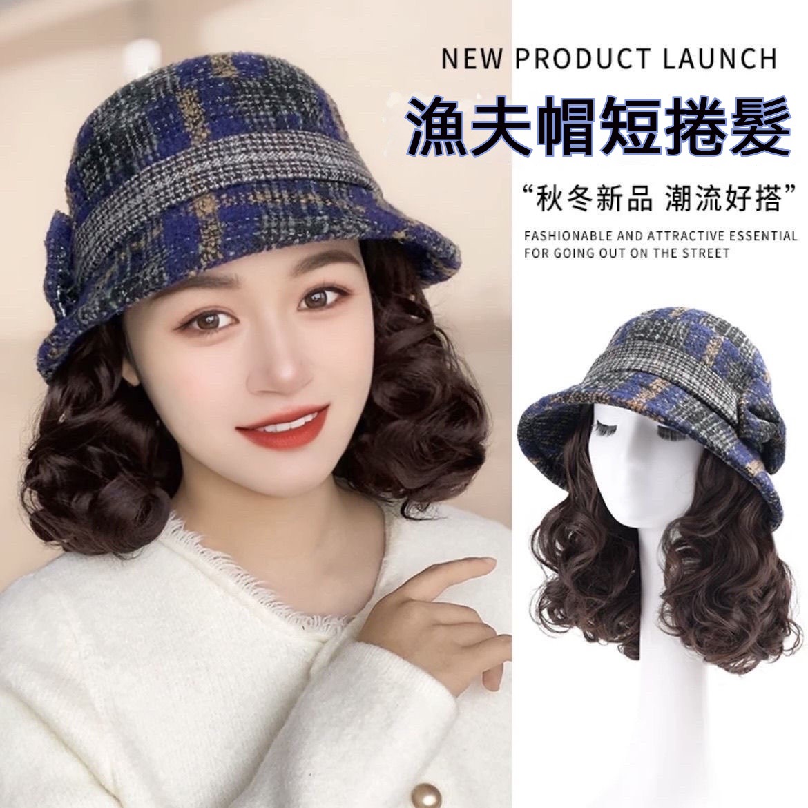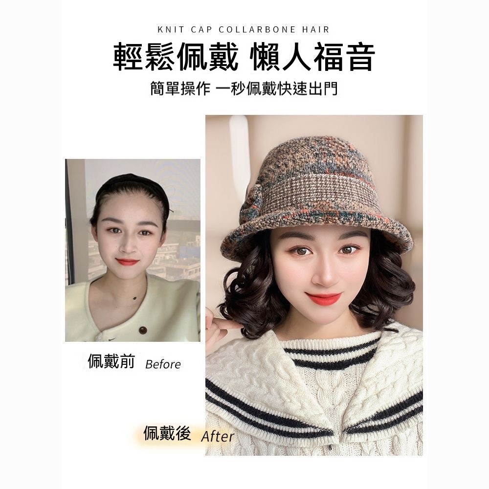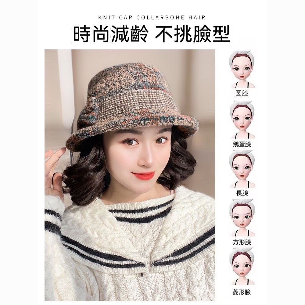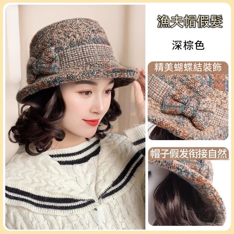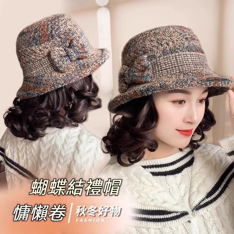 ✨秋冬必備!捲髮一體漁夫帽一戴秒變年輕✨遮白髮+保暖防風+玉米捲設計|頭圍彈性超好搭|媽咪逆齡就靠這頂✨