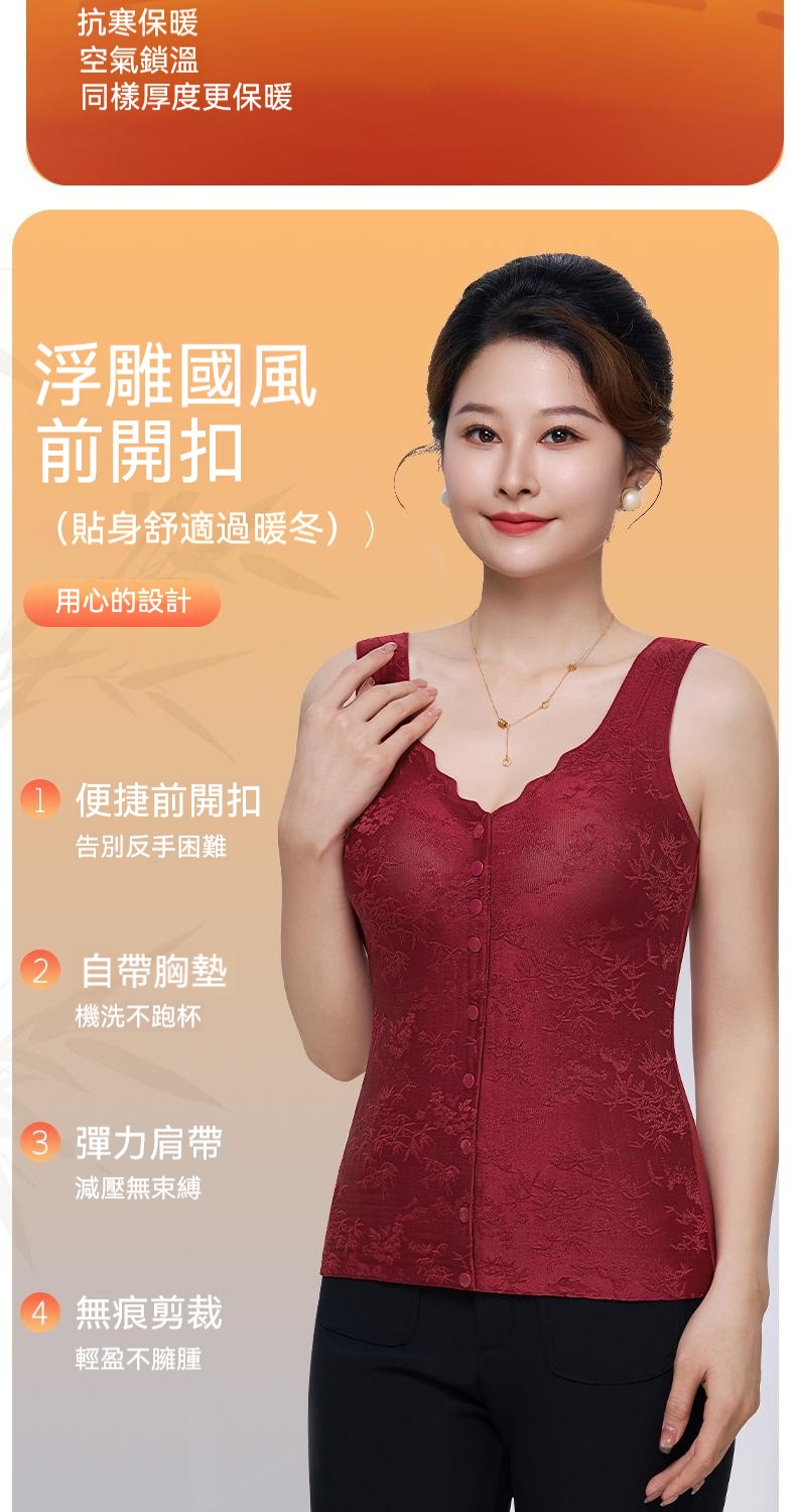 ✨【國風浮雕提花保暖背心】前開扣設計・優雅與溫暖的完美相遇✅一扣一展,盡顯東方韻味,台灣獨家設計,保暖美學革命✅
