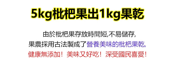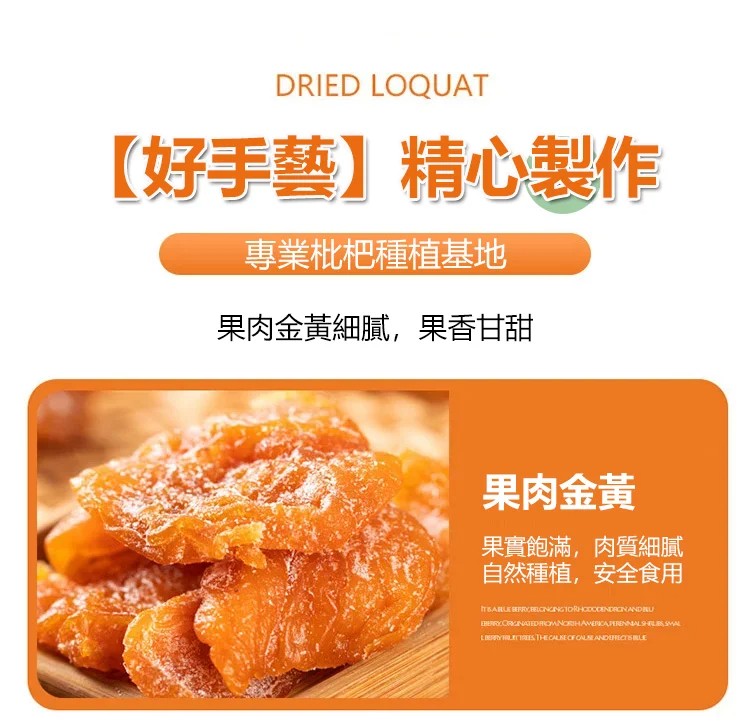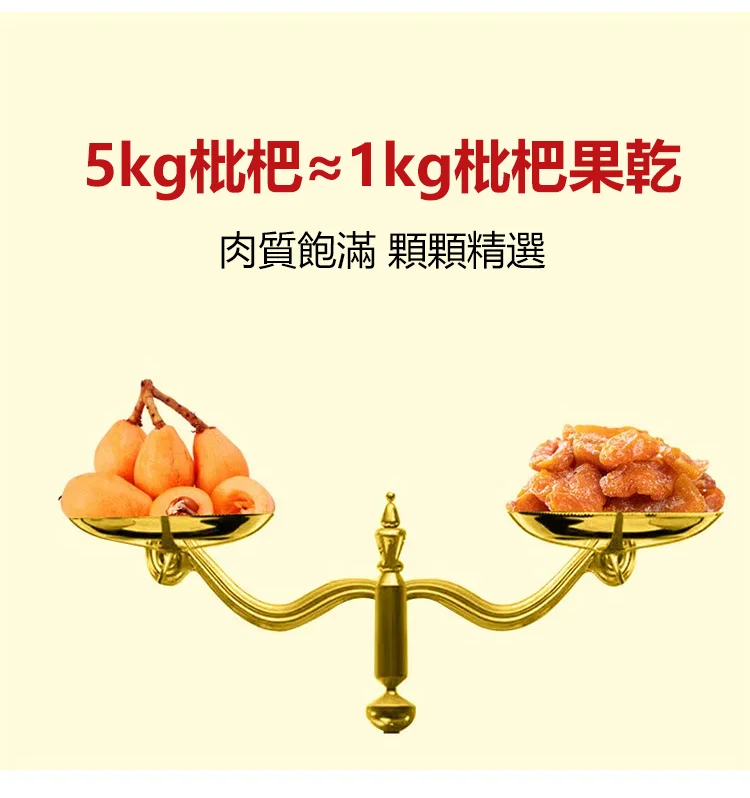 五台斤鮮果才能出一斤果乾!我們的枇杷都是人工采摘,經過精心挑選優質大果,保留其天然果香,隨後在通風良好的環境中自然晾曬,最大程度地鎖住果肉的營養與風味。最後,采用傳統竹鹽腌制工藝,將新鮮的枇杷與天然竹鹽完美融合,賦予其獨特的鹹香口感,同時保留了枇杷原有的維生素和膳食纖維。